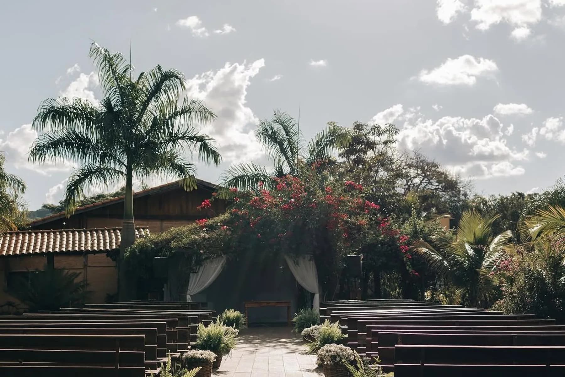 A cerimônia, o jantar e a festa acontecem todos no mesmo local. Recomendamos chegar a partir das 15:00 para a recepção.